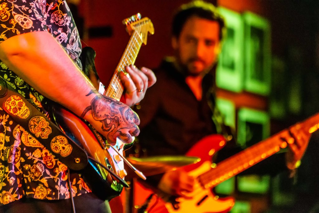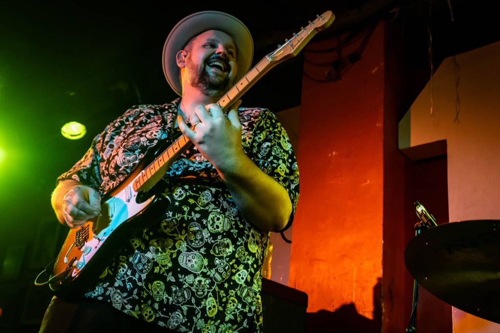 Every song in the set is delivered with panache and they keep coming; short, sweet, with a ton of humour and Bloater grinning away, clearly happy in his work. “Oops Sorry”, from his latest album “Pills”, about breaking hearts carries the line //You can stick it back together with a little bit of gaffer tape and superglue// and is a proper old school rock and roller of a song. Following this is a brand-new song “Banging my Head Against the Wall” with choppy guitar intro and a great blues rock feel. The set finishes with the frenetic rocker “Devils not Angels”. The band encored with “It came Out of the Swamp” and then it was time for people to leave, picking up some Merch on the way, and hopefully facing Monday morning with a bit of a smile on their faces.