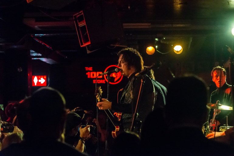 You could feel the anticipation, the tension, rising as the band appeared briefly on stage, checked instruments and then disappeared again. Finally, the wait was over. Jim Jones & The Righteous Mind walk on stage and explode into “Sex Robot” the first track from the “Collectiv” Album. Pressed right up against the stage, I am inches from Jim Jones right nostril as he leans over the crowd, a snarling banshee howling the words of the song and shaking maracas like they are possessed by Satan himself. All the while, Drummer Andy Marvel is holding down a frenetic beat as Bassman Gavin Jay wields his Rickenbackerlike it has a malevolent life of its own, and the stage-front crowd are ducking to avoid the flailing neck of the bass as it sweeps overhead. The action is frantic as the band blast through that first number with Mal Troon (Guitar, Lap Pedal Steel) moving from back of Stage to front of Stage, Guitar held high over the heads of those at the front, and Matt Millership looking to wring every note from the Keyboards. There is no time to draw breath though as the band launch into “Walk it Out”, keeping up the relentless onslaught on our senses. Even with Mal switching to Lap Steel for “Heavy Lounge” there is no slacking on pace or intensity. And so it goes for the rest of the show, a relentless assault on all the senses as the band power through songs from both Righteous Minds albums and some from the back catalogue of the Jim Jones Review. It is a glorious, chaotic rock ‘n’roll powerhouse of a show with the band throwing every shred of energy into every song, barely stopping for breath. At one point, Jim leaps from the stage into the audience, guitar in hand and continues playing as, on one knee, he brings the guitar to the ground, almost in supplication to the beast he has unleashed. The band are augmented by the tenor Sax of Stuart “Lodekka” Dace (The Future Shape of Sound) and Luci-Fire’s (The Urban Voodoo Machine) Baritone sax, adding more aural delights to the sonic maelstrom smashing into the room. Of course, a party is not a party without guests and Jim Jones has rounded up some of the finest in town: Paul-Ronney Angel (The Urban Voodoo Machine), Sister Cookie and Alan “Dirty Strangers” Clayton providing backing vocals on “Satan” and Barrie Cadogan (Primal Scream/Little Barrie) providing additional guitars on “Shazam”. One very special treat was saved for the last two songs where Nick Jones and Elliot Mortimer, original Jim Jones Revue members, took over on Drums and Keyboards for “Rock’n’Roll Psychosis” and “512”, closing out a very fine party.