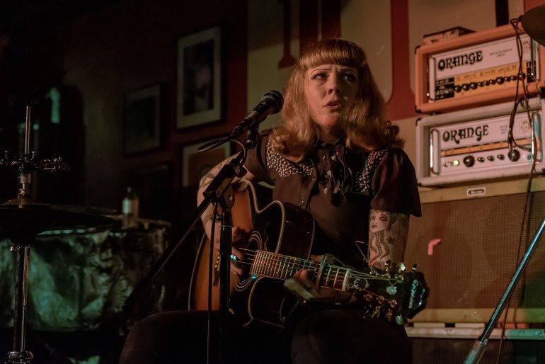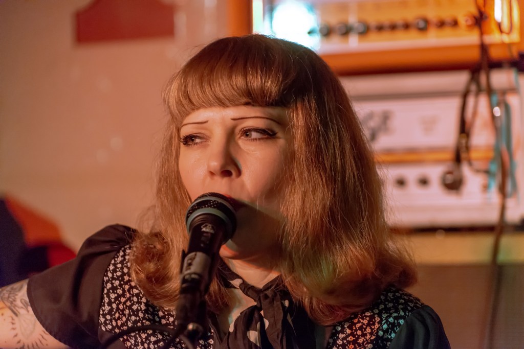 Opening act, Trixie & the Train Wrecks, Trixie Trainwreck (Guitar, Vox Kick drum) and Charlie Hangdog (Harmonica) kicked off proceedings with a set full of Dirty Country Blues, 50s style R&B and honest rock ‘n’ roll. Trixie’s raw, smoky vocal combining with Charlie’s Harp to take on a trip down home town America, with songs such as the hard driving “Daddy’s Gone”, the solid beats of “God Damn Angels” and the Maxwell-Street-Blues of “Poor and Broke” all well-received by a rapidly increasing audience.